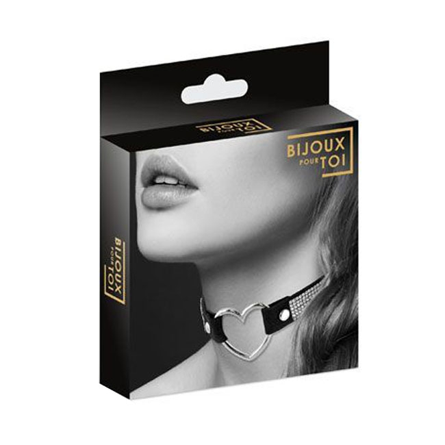 Чёрный чокер с кольцом в форме сердца и кристаллами Bijoux Pour Toi