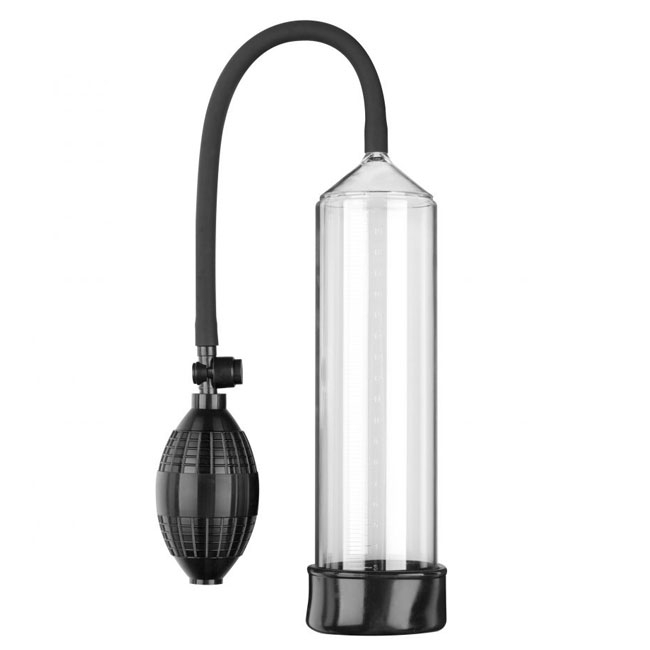 Эрекционная помпа для создания крепкой эрекции путем откачки воздуха из колбы с помощью груши. Для стравливания лишнего давления на груше есть клапан, срабатывающий при нажатии кнопки. Более высокую эффективность достигает совместно со специальными средствами для увеличения члена